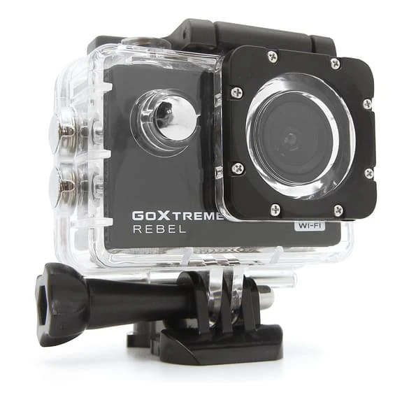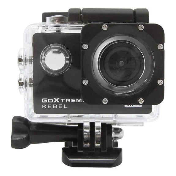 GoXtreme Rebel possède un boîtier étanche de 30 m et un grand et confortable écran de 2 pouces, parfait pour configurer vos photos, visualiser ou modifier les paramètres de l’appareil photo et offrir une lecture et un examen confortables de vos vidéos et photos. GoXtreme Rebel comprend des accessoires pour tout type d’action.