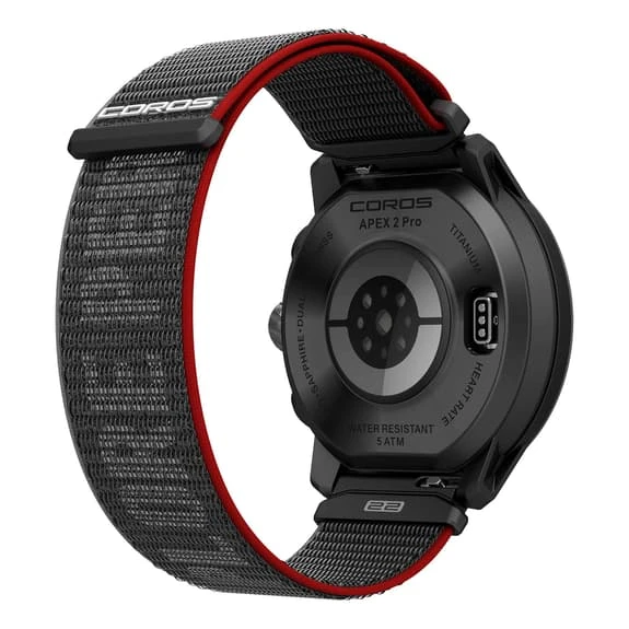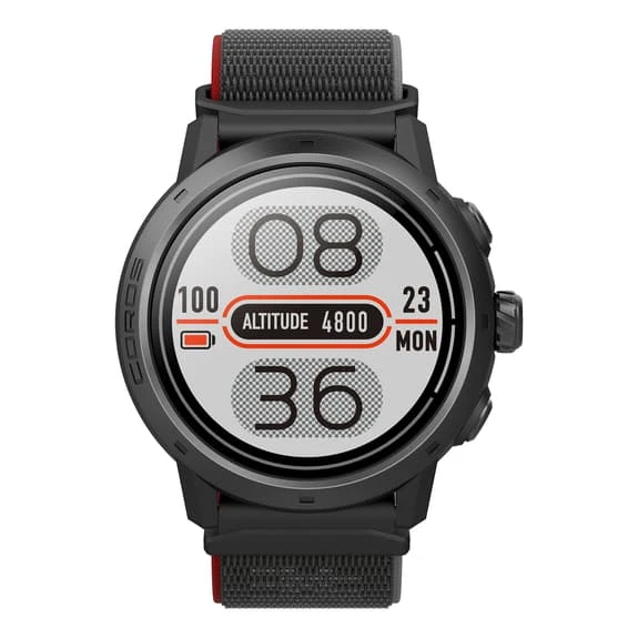 La Coros Apex 2 Pro est une smartwatch conçue pour être performante sur tous les types de terrain. Avec un extérieur encore plus résistant, une antenne GPS repensée pour des performances accrues, une expérience de navigation améliorée, un capteur optique de fréquence cardiaque de nouvelle génération et une plus grande autonomie de la batterie GPS, l’Apex 2 Pro est un outil puissant pour guider votre entraînement et suivre vos mouvements dans la nature. Un écran en verre saphir et un biseau en alliage de titane de grade 5 protègent l’électronique à l’intérieur de la smartwatch. Si le verre saphir reste pratiquement inrayable, un nouveau revêtement PVD offre une résistance aux rayures deux fois supérieure sur la lunette par rapport à son prédécesseur, l’Apex. Ce modèle fonctionne dans des températures de fonctionnement du poignet allant de -20°C à 50°C, ce qui vous permet de tester les limites de l’exploration. Construite avec une excellente étanchéité, cette montre de sport résiste également à la pression jusqu’à une profondeur de 50 mètres. L’Apex 2 Pro offre 75 heures d’autonomie de la batterie GPS complète. De plus, il faut moins de deux heures à la montre pour passer de zéro à une charge complète.