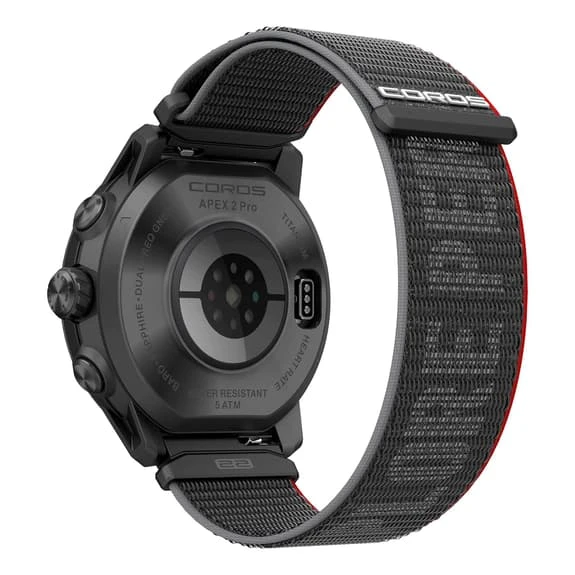 Le capteur optique de fréquence cardiaque au poignet est doté d’un système de 5 LED et de 4 photodétecteurs disposés de manière personnalisée, protégés par un revêtement souple et résistant aux rayures. Grâce à des algorithmes avancés d’élimination du signal, votre Apex 2 offre un nouveau niveau de précision de la fréquence cardiaque.