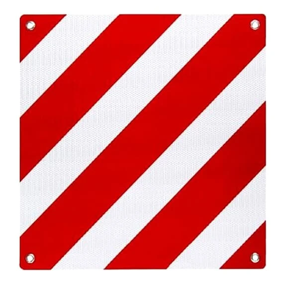 Il s’agit d’une plaque obligatoire pour signaler toute charge qui dĂ©passe de l’arrière.