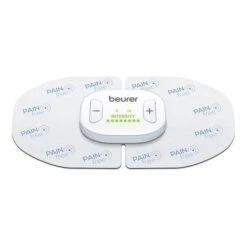 – 4 Ă©lectrodes autocollantes, dont 1 grande Ă©lectrode (19 x 9,5 cm), 1 Ă©lectrode moyenne (11 x 7,5 cm) et 2 petites Ă©lectrodes (5 x 5 cm)
