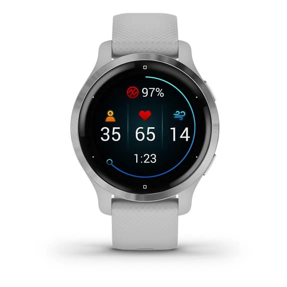 – Health Snapshot : Analysez votre niveau de santĂ©. Suivez votre frĂ©quence cardiaque, votre oxymĂ©trie de pouls, votre respiration et votre stress en 2 minutes. Puis, analysez tout en dĂ©tail grâce Ă l’application Garmin Connect sur votre smartphone compatible