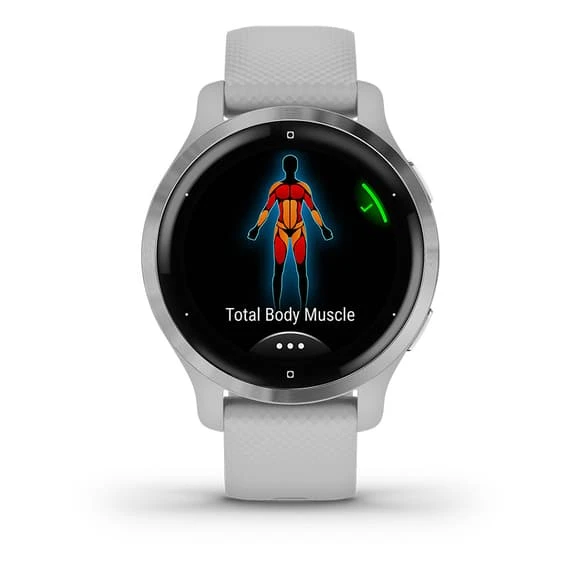 – EntraĂ®nements : Essayez les entraĂ®nements prĂ©installĂ©s sur la Venu 2 : cardio, yoga, musculation, HIIT et Pilates ; ou crĂ©ez vos propres entraĂ®nements Ă partir de l’application Garmin Connect sur votre smartphone compatible. Vous aurez Ă©galement accès aux entraĂ®nements de Garmin Coach pour le running.