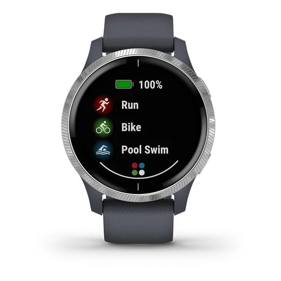 Votre santĂ© est entre vos mains grâce Ă Garmin Venu. ContrĂ´lez vos niveaux d’oxygène, d’hydratation, la performance de vos exercices, …. et bien d’autres paramètres pour maĂ®triser votre mode de vie.